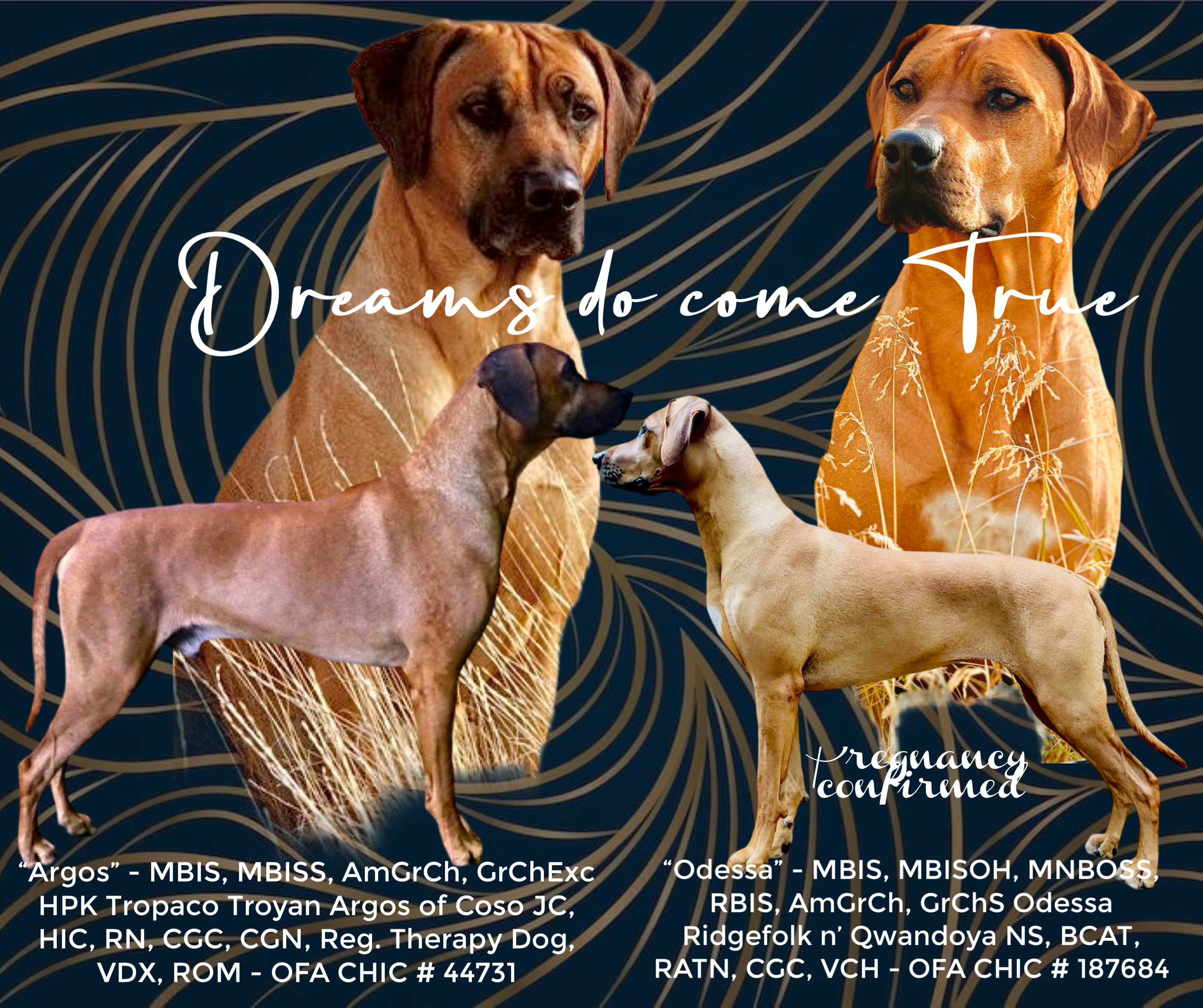 Dam to be: MBIS, MBOSS, RBIS, CanGrChS, AmGrCh Odessa Ridgefolk n' Qwandoya NS, BCAT, RATN, CGC, VCH CHIC# 187684